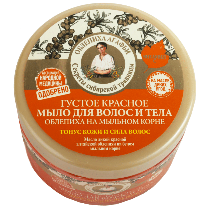 Густое мыло с нежной текстурой для качественного очищения волос. Он изготовлен из экологически чистых компонентов, в том числе мыльного корня, масла шиповника, таежных почек и даже сока ягод дикой алтайской облепихи. Продукт очень ароматный, бережно ухаживает за кожей и волосами. При умывании лица дерма становится здоровой, также наблюдается эффект лифтинга. Придает волосам энергию, силу и блеск, глубоко очищая их от загрязнений.