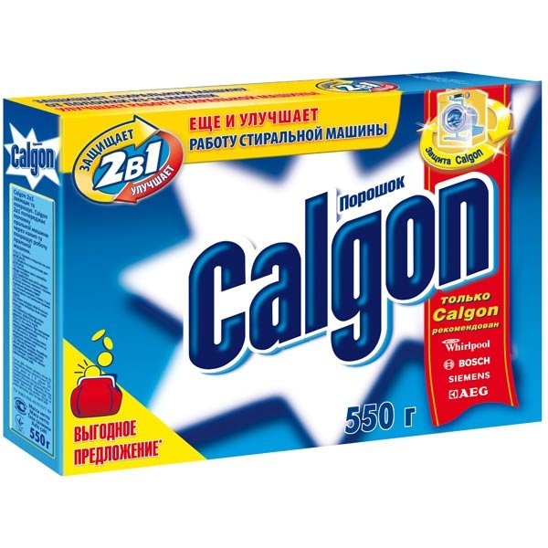 Пожалуй, «Калгон» можно отнести к наиболее разрекламированным средствам. Доступен в виде порошка или геля. Для очистки средство помещается прямо в барабан или выливается в пылесборник.
